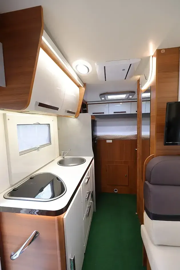 Járműveink teljesen felszereltek: kényelmes ágyak, jól felszerelt konyha, fürdő és zuhanyzó, klíma, okos TV, Bluetooth és WiFi. Otthoni kényelem a természet közepén, stresszmentes utazás minden nap.